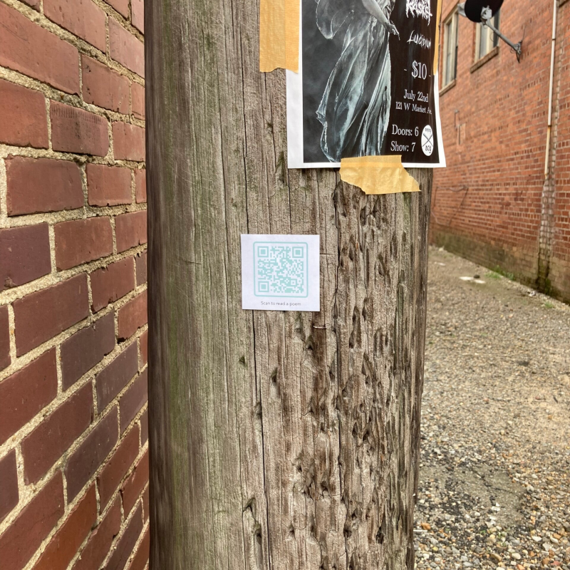 I have been putting up sticky notes with a QR code on them for people to find and scan. They may be found in coffee shops, on park tables, on shop doors and windows, and anywhere else a sticky note can be permissibly stuck. The number above shows how many times the QR code has been scanned, so we can see how much poetry has been spread! I check the number pretty often, so it's updated regularly.