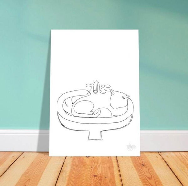 Sink Cat One Line Art Print. This drawing is from my poem "Sink Cat."